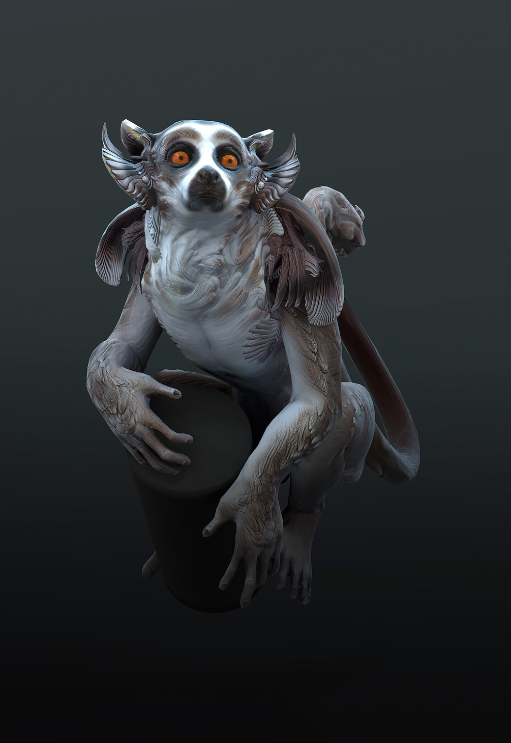 A full run through of creating a creature from scratch in Zbrush. Starting with a basic anatomy study of a Lemur, then applying a design fantasy spin from that study. Concluding with showing the workflow of transferring the Zbrush sculpture to a low res game engine friendly mesh for posing and rendering in Marmoset.